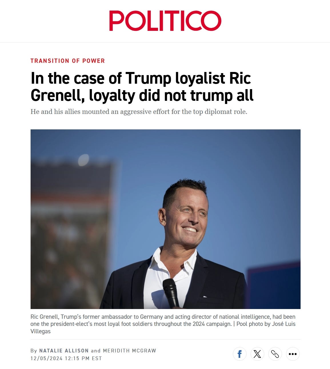 Politico reported in December 2024 that an associate of Ric Grenell contacted conservative influencers with contracts worth up to five figures. One such contract reportedly required posts during “peak posting times,” said the “content must appear genuine,” and barred anything that looked too much like an advertisement. The money was to be routed through a consulting firm, Magnify Media Partners LLC. Grenell denied involvement. The firm owner said the project was never executed. But the contract language is the story either way.
